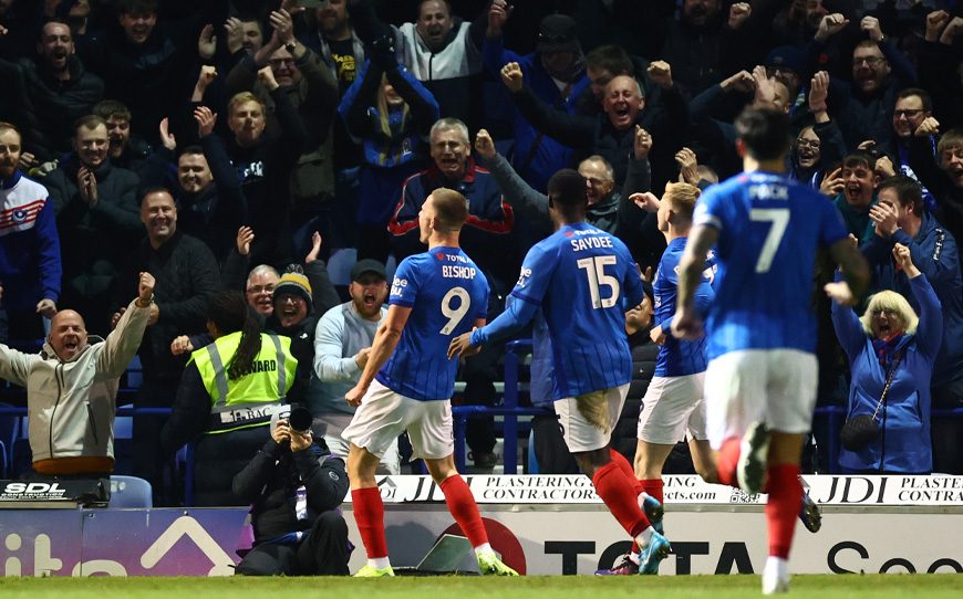 Bishop celebrates putting Pompey 3-1 up