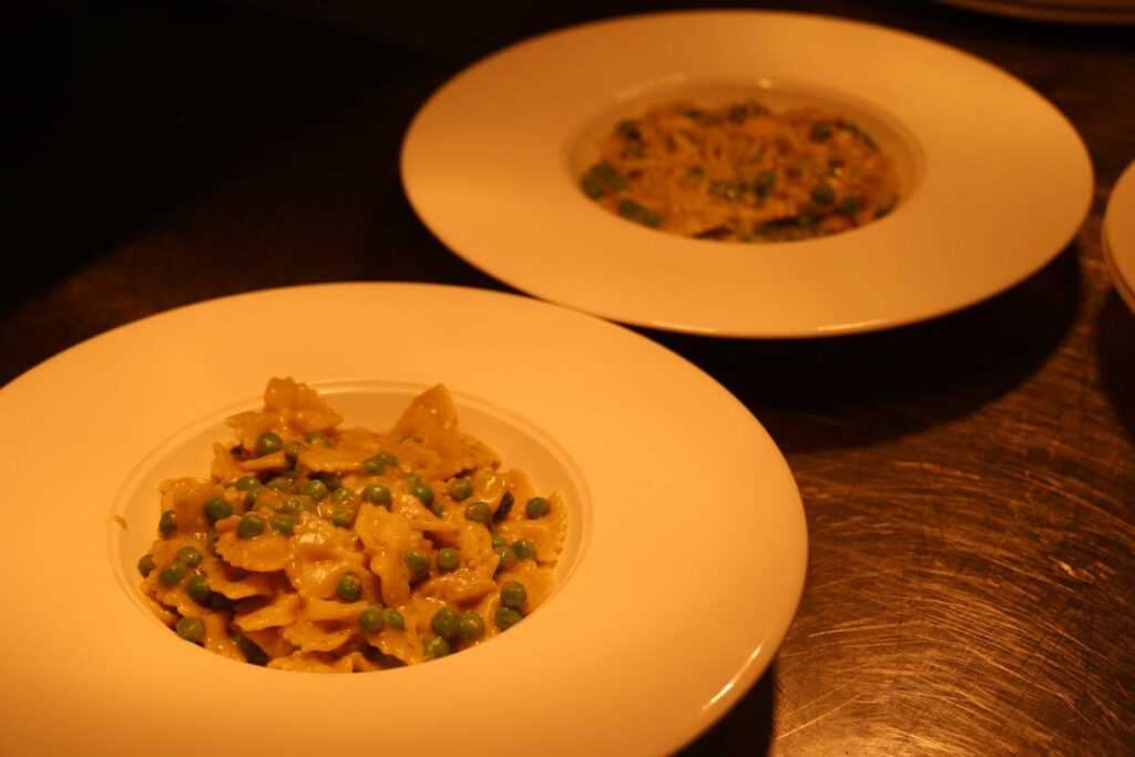 Despite being tasked with perhaps the most straightforward of dishes, Callum and Braden made a lightening quick start to their creamy pesto and pea pasta, settling into the kitchen environment very quickly and had their finished product underneath the hot pass in no time.